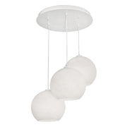 Contemporary LED pendant with soft hand-blown ribbed glass diffuser. Suspended by a 9 ft. adjustable cord with metal monopoint canopy. Hang Individually or in clusters for a bold statement. Medium base socket for multiple lamping options.